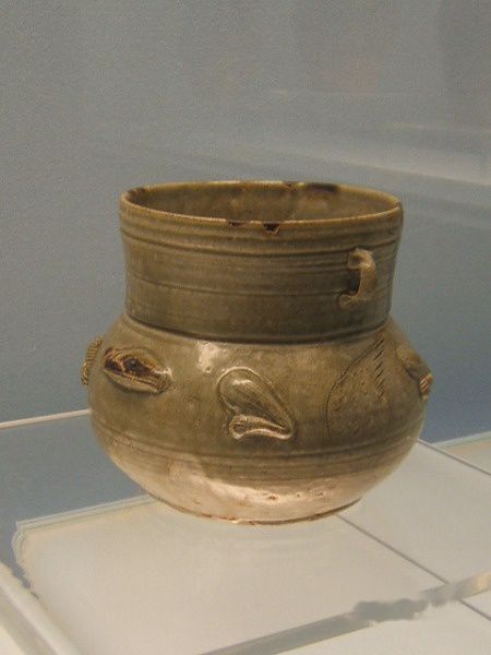 通常南北朝瓷器仍主要由东南各窑场生产,普遍胎底较为粗松,多呈灰白色或褐色,气孔明显。釉面仍以青黄色为大多数,胎釉结合不甚紧密,易开片,故许多器物 留存至今其釉面大多已脱落。装饰方面仍以器物造型变化为主要手段,但已开始做多种新的尝试如刻划花、贴花、贴塑等等。