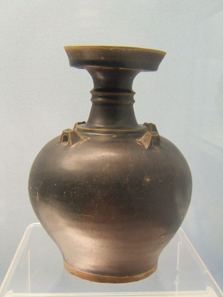 黑瓷胎中铁、钛含量较高,黑釉是利用多量氧化铁(含量在4%以上),以还原焰烧制而成的,釉层较厚,呈黑褐色或黄褐色,佳者釉面滋润,色黑如漆 。此壶具有明显的东晋瓷器特征,是早期黑釉瓷器中的佳品,充分证明了至晚在公元四世纪,中国黑釉瓷的烧造已进入了一个成熟期。