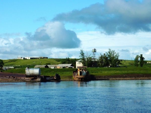 界河对岸俄罗斯乡村码头