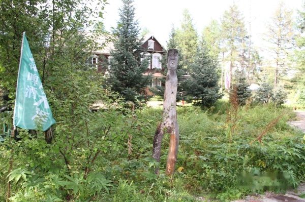 上面的那个木偶不知道是做什么的,下面是根河的小木屋