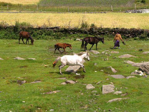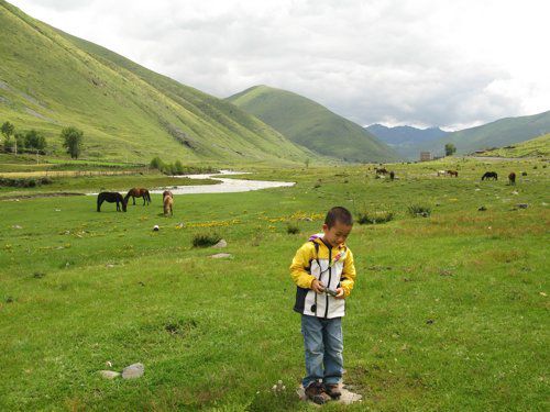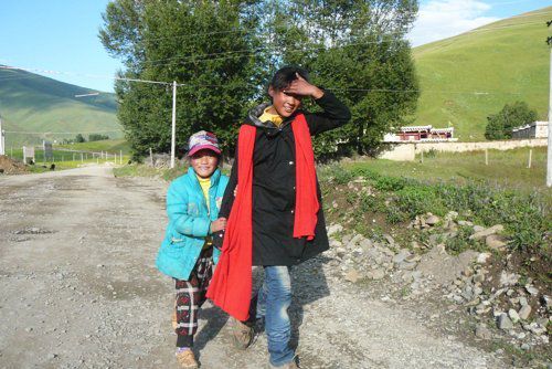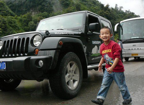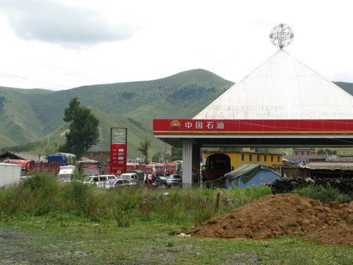 新都桥,救命的加油站!离它2公里的时候就开始堵车,把咱急的呀!跟路边看热闹的藏族小男孩聊了会儿天,给他们吃二郎山上买的超级好吃的李子。也许是李子太好吃,抑或牧马人确实帅,小伙子们一抹嘴,说,“来,我们带你从小路开,绕过去,直接到加油站!”一个小鬼跳上车,站在车门外面的踏板上,指挥我从他们家旁边的草地开上一条拖拉机路,再横越一条浅河,上个小坡,还真就是加油站!回头再看小伙子们,远远地站在河水中间,跟我们挥手告别呢!