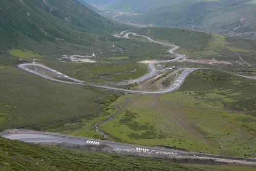 翻过折多山口,这长长蜿蜒的下坡山路,准备空档滑下去了!快没油了啊!