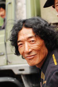 新都桥一起堵车的拖拉机手 带路小伙子中最大的一个