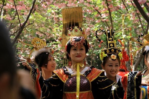 武则天穿越千年和公主、将军、宫女在国花园内观赏洛阳牡丹,恰似电影版《神话》一样,给数千万计的游客一个大大的惊喜和意外,纷纷举起相机、手机拍照留念,众多狂热粉丝竞相涌到演员身边合影,生怕错过此次洛阳神话般的美丽旅行片。