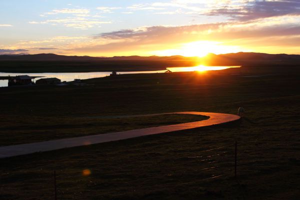 从黄龙开到若尔盖唐克大约用了三个多小时,在下午四点半左右我们到达了唐克的九曲黄河第一湾,门票48/人,学生票40/人。在此我要告诉大家,这个时间太早了···唐克6月份的日落时间大约在8点半左右···于是我们华丽丽的在这里冻了快4个小时。我也华丽丽的由于感冒开始感到高原反应了,看日落要爬到一个小山坡的上面,我基本上爬10步就要歇5分钟,不然就觉得头晕眼花的···不过还好我们时间充裕的很···龟速的还是移到了高点,我们没有爬到木栈道的尽头,因为差不多上面一段是平行的,但是路还很长,大家基本上都没有过去的,都在靠近水一侧的高点观赏了。期间来了好几拨人,都呆了一会儿就走了。云层开始的时候很厚,我们一直担心太阳出不来,不过还好老天开眼啊,在快八点的时候太阳终于挣破云层露出来了,厚云层逐渐散开,天就跟刚亮一样,景色又是超美!!!没白等着4个小时,基本上等到最后的就只有我们一车和另外一车的十几个人了,不过真是太值得了!