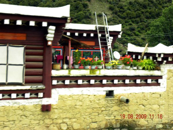 这就是有名的道孚民居,据说是藏式房屋里最具特色、最富丽堂皇的房屋之一。那鳞次栉比的藏式民居,从平坝向着低缓的山坡上蔓延,构成一道别具一格的风景线。