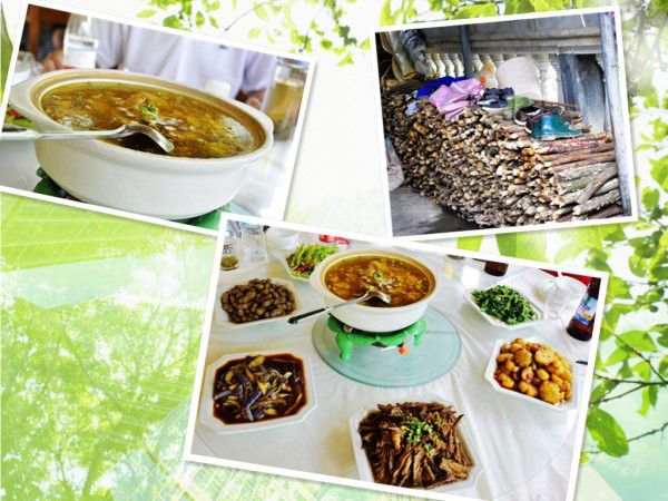 那里的食品都是农家老乡种在后院的蔬菜和散养的土鸡。令人永远时刻难忘的是被同事称作的“销魂土鸡汤”那真是令人味蕾永远记忆的味道!后院的小土豆饼,自家的南瓜藤,当然还有当地的特产石斑鱼。样样菜肴都是环保,爽口,令人难忘的!说到安吉最要说的吃就是竹笋了!各种吃法也是应接不暇,嫩的凉拌,大的烧肉!米饭是用最原始的柴火烹调出来的,味道独具。