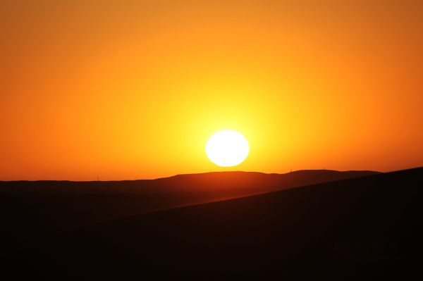 6:00起床、退房吃早餐,7:00上路,下午5:30左右到八道桥看日落,晚上在额济纳
