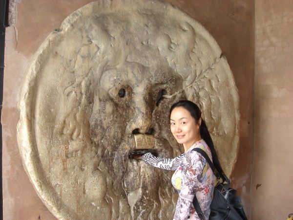 后雎不可理喻的是我的执着,一定要找到奥黛丽赫本著名的电影《罗马假日》里的场景——真理之口。它位于韦恩河畔的真理之口广场一侧的科斯梅丁的圣母院(Santa Maria in Cosmedin)入口处的左侧,据说撒谎者把手伸进去就会被它咬掉。从古罗马市场出来,向警察一路打听,才找到不经意就会错过的真理之口。真理之口其实就是块模仿河神的脸的大巨石。