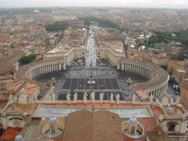 登上教堂顶楼,远眺雨中的罗马全景,异常清晰。而梵蒂冈城国尽收眼底,我完全被它征服,它的影响力远远大于它的领土范围。