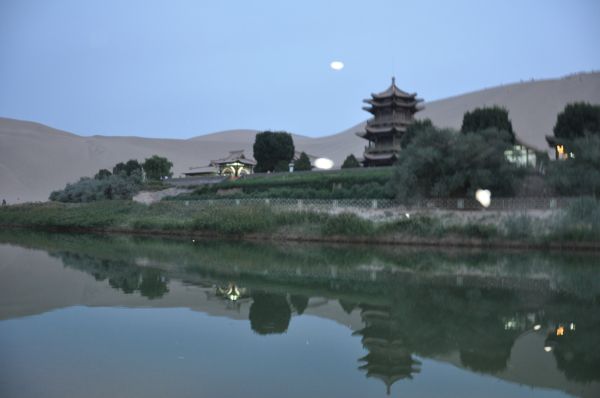 通往敦煌的314省道,约晚上10时抵达了在敦煌入住的宾馆。旅途中不仅遭遇了一场沙尘暴,还观看了布隆吉雅丹、古长城和烽火台遗迹,并顺游了莫高窟、沙鸣山和月牙泉。
