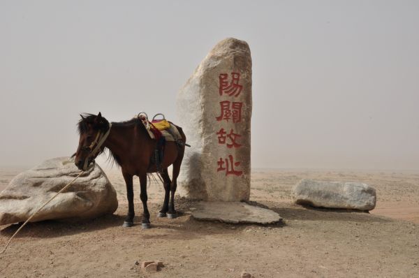 阳关故址仍被淹没在这块石碑后的戈壁荒漠之中