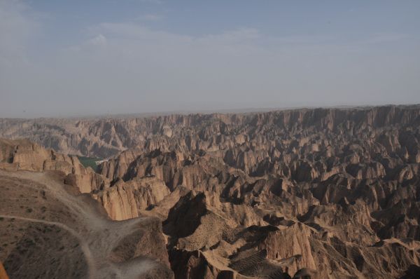 第五天我们10时离开的武威,中午在景泰县城里吃的午饭,大约14时30分我们到达了本次行程的最后一个景区——黄河石林。在这个景区我们呆了五个多小时后才踏上了奔赴兰州中川机场的行程。21时我们就到达中川机场,谁知那晚机场的宾馆竟然客满了。而不幸的是由于事前得到的信息是这个机场客流少,客房不需预定,所以事前也没有与其他宾馆联系。好在这里离兰州只有一小时的行程,十时多我们在兰州找到了可供下榻的宾馆。