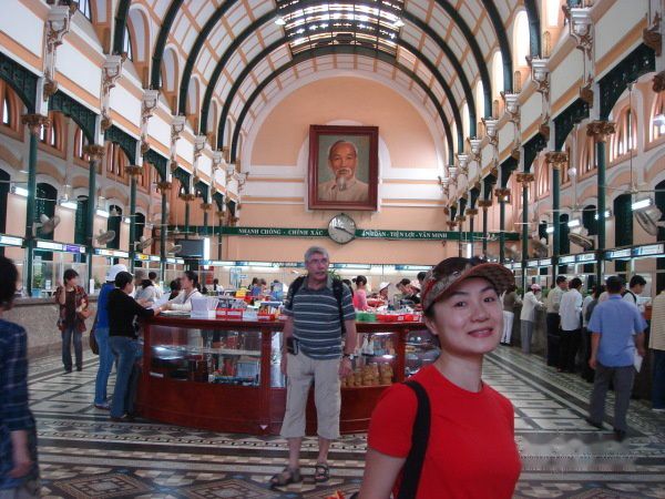 胡志明市邮局,当天寄走的贺卡妞收到时已过一个月,这蜗牛爬的速度