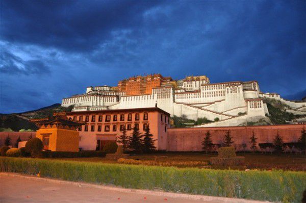 夜色中的布达拉宫,犹如古代欧洲的城堡,象一幅美丽的油画