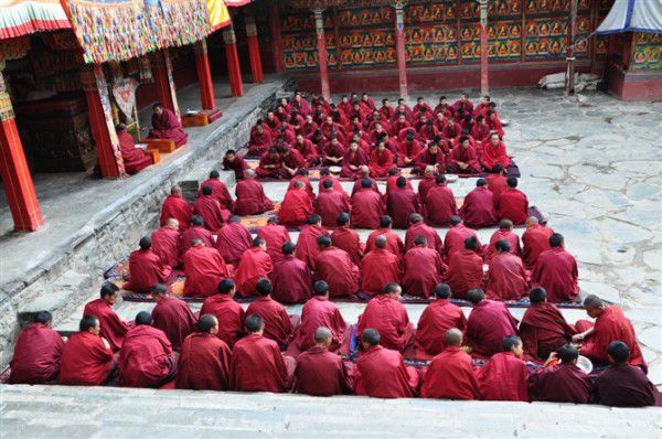 红衣喇嘛相对而坐的壮观场面,只是他们真的心不染尘埃?