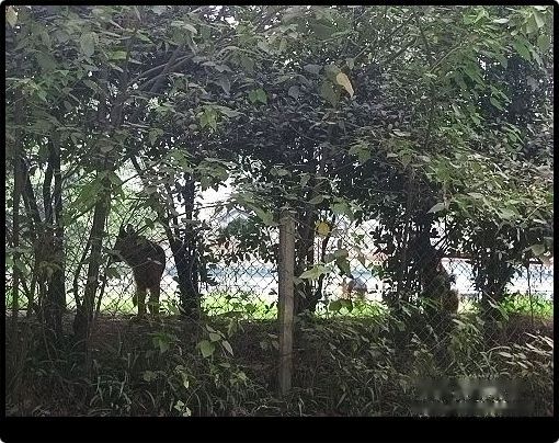 大门紧闭的狼犬室无法进去参观,只能在马路上隔着铁丝网看看那些德国黑背。