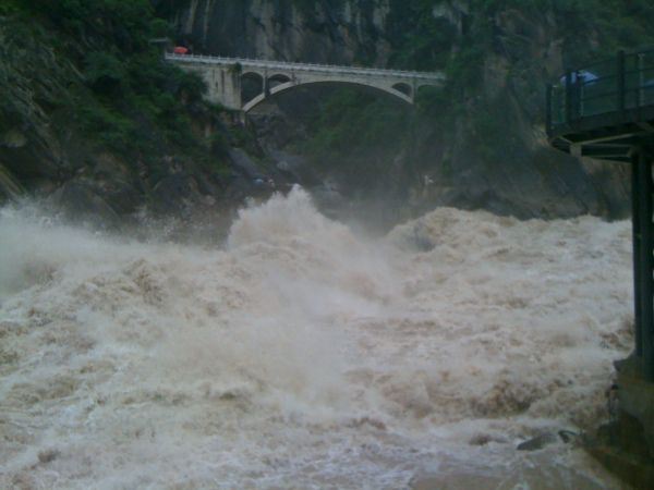 Day 7: 8点出发check out 奔赴虎跳峡。原先的行程徒步中虎跳,由于大家的体力,胆量最终全部选择了退缩哈哈哈。徒步上虎跳。抵达虎跳峡镇大约1点钟,午餐在虎跳峡镇解决。味道价格一般般。天公不作美下起了小雨,沿着张老师小路一直走到峡底近距离观看传说中的虎跳石,汹涌波涛的江水拍打着矗立在哈巴雪山与玉龙雪山中间的虎跳石,湍流的江水气势极其壮观。体力不支者可以选择花轿上下,价格100元。如果你看到那些轿夫淋雨抬轿,你忍心去搭乘吗?雨中游玩虎跳峡稍微有一些危险性,游玩大约1.5小时后领队像赶鸭子一样将全军人马轰到车内开拔丽江。抵达丽江的途中路遇堵车,车祸,下雨、6点钟顺利抵达丽江古城。晚餐在花马街正鑫三文鱼庄解决,味道不错。三文鱼的价格便宜,其他的稍贵一些。可以尝试品尝。古城至花马街步行大约30分钟,可以在大水车乘坐公交直达。宿:丽江阅古楼客栈