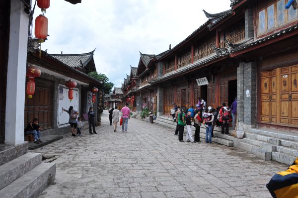 Day 2:聆听窗外细雨霏霏,整个客栈都沉浸在熟睡之中,拉开窗帘外面一片漆黑,百无聊赖摆弄着手机。好不容易盼到大家的起床,将孩儿们所在房间悠哉闲逛古城的清晨。由于昨夜的一场细雨的光临古城的青石板有些湿滑,整个古城与昨夜的喧闹相比安静了很多,惬意了很多。我喜欢这样的宁静。古城里的商铺营业时间大约在9点半左右,此时的酒吧也沉睡在美梦之中。。。。拍照,摆着各式的POSE ,回客栈接孩儿们早餐。餐后在大水车与越野者负责人会和商讨后5天的梅里之行。叽叽喳喳持续了2个小时,才敲定后面5天的行程。俱乐部负责免费送我们至“束河古镇“后门。这样即可以逃避80元的古维费和50元的束和古镇的门票。窃喜。。。。不到九鼎龙潭,不能说明你真正游览了束河古镇。很清很静,让你不想再大声的喧哗。束河古镇相比古城安静了很多,青石板两边的具有民族特色的小屋让你总是徘徊在门外。咖啡吧,酒吧,小屋,狗狗让你真的想慢慢的去体会去回味。失意的童鞋们真的可以来这里闲坐发傻发呆的回忆曾经的点滴。。。哈哈。午餐在束河解决,(具体是哪个餐馆忘记了,就是在马锅香腊排店的旁边)。三吃三文鱼(涮吃,生吃,油炸鱼皮),味道鲜美。三文鱼分虹鳟和金鳟,很是奇怪,北京怀柔的烤虹鳟难不能就是此品种的鱼儿??至今还是个迷。。。。酒足饭饱继续闲逛。。。走出束河古镇是已经是下午4点多了,搭乘8人座位面包车(25元一车),直奔古城木府。古城木府介绍大家可以网上搜搜,这里暂且不提。木府没有进去要门票的而且还60大圆,坑爹呀,不去。门口拍照同样玩的不亦乐乎。。。肚子有些抗议了,本想去品尝传说中的”玉洁“排骨,但是真的有些疲惫不看了,在加上孩儿们的抗议,结果孩儿们必胜客解决,我们尝试了大水车附近,阿拉丁俱乐部旁边的一家腊排骨火锅店。现在想起那味道依然作呕。。。。。如果你体力后好,还是去新城吃吧。如果你依旧不喜欢这里的口味,那么古城的KFC,必胜客同样也能解决你的温饱问题。回客栈休息准备后5日的梅里之行。宿:丽江