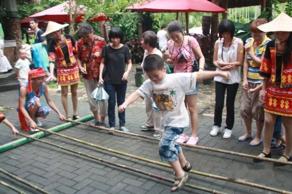 呀诺达热带雨林内儿子跳竹竿舞: