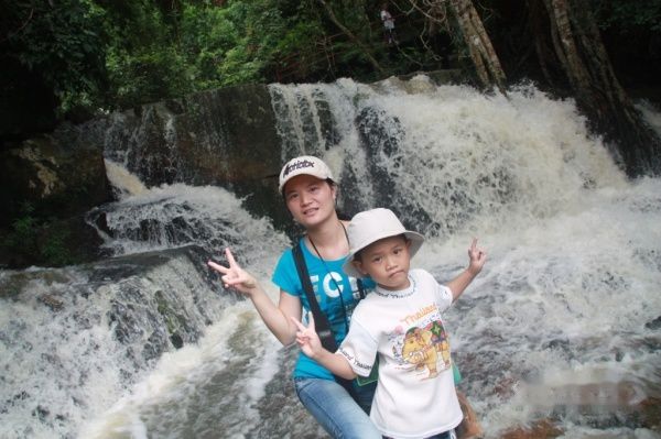 呀诺达热带雨林的瀑布因下雨水流很大很急: