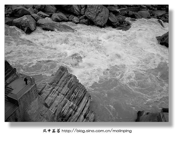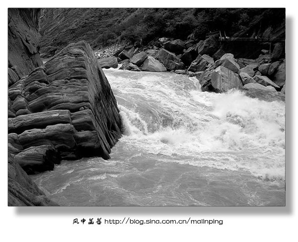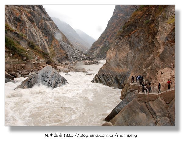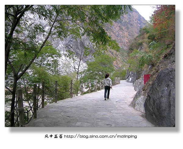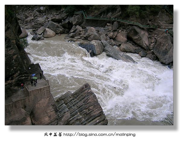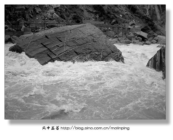 ▽图10:离开虎跳峡半个多小时后,途径一座桥桥梁,大概是桥梁年久失修,为保安全,过桥时导游让所有游客下车行走过桥,这才得以拍下这峡谷中的一景。特别喜欢这江滩,似乎挺干净,总算是看不到那些白色污染了。