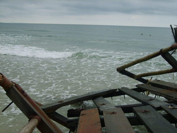 海边的断桥,走起来还挺稳的,只是断开了而已。