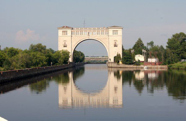 斯科河和伏尔加河相连,使莫斯科有了出海口。从1932年开始修建,经历了4年零8个月,于1937年5月1日通航。在这段运河上还修建了8座船闸和8座水电站及其他配套的建筑设施。它的建造者是斯大林时期的劳改犯,可以想象在当年无产阶级专政下,这些劳改犯人的劳动强度有多大,因此在修建运河的过程中死了很多人。