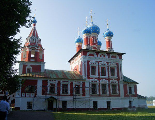 我们登岸游览了圣特米特里教堂。1591年留里克王朝最后的继承人年幼的德米特里小王子和他的母亲一起住在圣特米特里教堂,可小王子在这里离奇死去,该事件导致了俄罗斯混乱时代的开始。