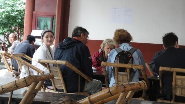 这是文殊院里的茶馆,很有成都特色。只是今天天气不算好,人不多。