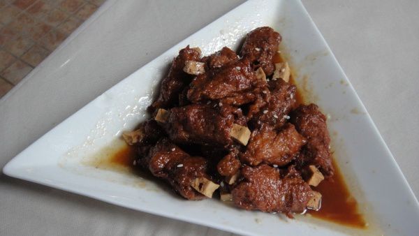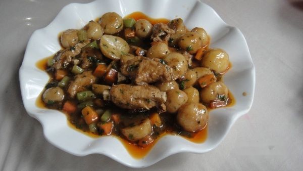 在茶馆边有家素食馆,克试了一试。点了三个菜,嗯,还不错。特别是这个“糖醋排骨”