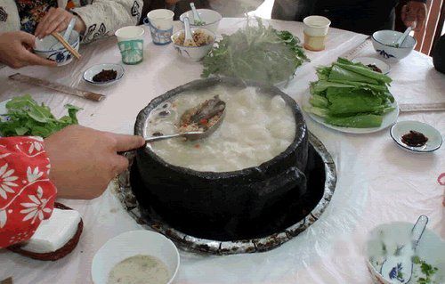 中午,我们来到了鲁朗镇,大家一致同意去品尝有名的’鲁朗石锅鸡’, 鲁朗镇上有很多店家都说自己是正宗的,我们选择了一家有全国连锁的鲁朗石锅鸡专营店,他家的价格贵点(一锅鸡得280元)但是很正宗,味道鲜美,建议大家到林芝一定要吃。鲁朗石锅鸡的调料有人参、党参、林芝特产手掌参、何首乌、当归、藏贝母、山药片、天麻、薏仁、百合、生姜、胡椒、红枣、枸杞等三十多种,舀来雪山上流下的溪水,用炭火、用石锅不紧不慢地熬炖,手掌参(当地所产的一种特殊药材,形如极小的手掌,煮后变得透明)、党参等大补经过长时间慢火炖煮,鸡肉不柴不老,鸡汤味道鲜美无比,入口余香深沉。还配了些小菜,我们八人饱餐一顿。这一餐吃的很丰盛很舒服,我已完全没有高反,这是到西藏的第四天,终于好好犒劳我的胃啦。