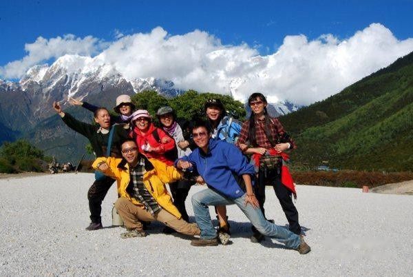 首先会路过一个门巴村庄,原来我们都知道墨脱那边有门巴人,并且还有很多关于门巴人的传说,比如巫术和投毒等等。这个村子是为了环境保护的原因,从大峡谷中整体迁出的,所以村子里的房屋都是新建,不忙的季节,村民们会聚在路边晒太阳聊天,他们中间有的人是可以用简单的汉语交流的,到这里不妨和他们聊聊天,不过小胖导游一再警告不可以吃他们的食物,也不可以饮水,到底怎么样,自己判断吧。再往前又是一个村子,这个村子前面有两个树,生长在一个巨石的裂缝中,紧紧依偎缠绕,颇有患难夫妻的味道,据说是文成公主和松干赞布种的。环顾四周,除了南迦巴瓦、加拉白垒之外,另外可以看到数座耀眼的雪峰,虽然不知名,但是同样美艳夺目。我们兴奋地大呼‘南伽巴瓦,我来啦!’,山谷里回荡着快乐的声音,小胖导游对我们直摆手:“声音太大啦小心雪崩!”,o(∩_∩)o…呵呵,管不了这么多了,路边的藏民笑眯眯的友好的看着我们这群‘疯人’。