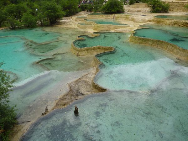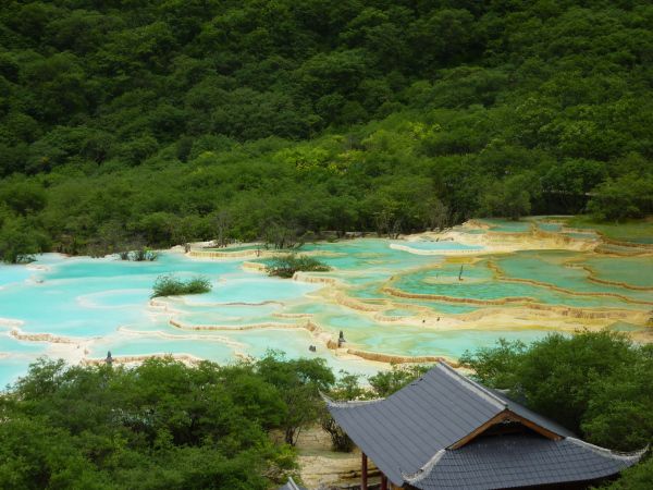 第一天(7月26日),飞机推迟起飞,晚点了一个小时,到机场后,没有发现有接我的师傅,于是赶紧联系,手机信号十分的不好,联系了半天,师傅才现身,不过还好,这个师傅人还不错,帮着把行李提上车,就直奔黄龙。师傅挺善谈的,我们也问了一些九寨的问题。到黄龙后,先买票,然后又送我们到索道,行李就放在车上,师傅就在这等我们,下来之前联系他,他在出口等我们。坐索道上到黄龙,在森林里走了一段之后,到了最著名的五彩池,的确太美了,不过人也太多了,欣赏之后,就开始下山。途径一个岔路,建议选择左边的路下上,人少,又不会影响欣赏美景。总体而言:1.高原反应我是没有体会到,但是看见有人吸氧。2.黄龙最美就是山顶的五彩池和很多的钙化池。3.建议选择左边的路下山。