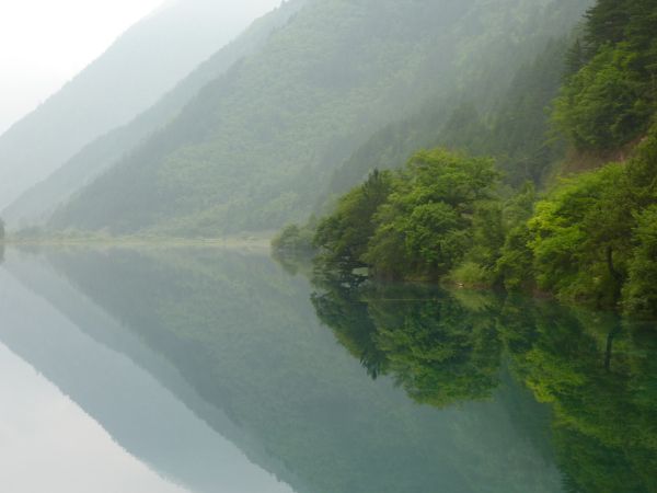 8.一进沟,最好先看镜海,晚一点就会起微风,影响倒影。