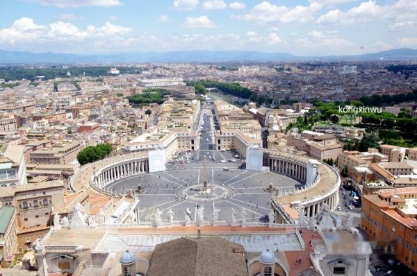 圣彼得大教堂的圆顶一顶要上,从那里可以俯瞰整个梵蒂冈。从大教堂的右侧入口就可以到达,可以选在走楼梯或者坐电梯。走楼梯门票5欧,坐电梯7欧,但是电梯只能到达第一层天台,要登圆顶还有一半路程必须走楼梯,大概两百多级台阶吧,走起来不算累,而且登顶后的景色非常美,所以很值。