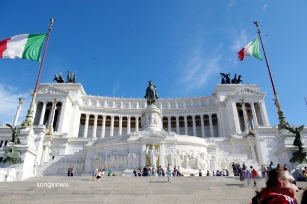 因为我们目标不在此,也就没有细看,一直走到转角处的维托·艾曼纽二世纪念堂(Mon. a Vitt.Eman.II),他正对着的就是威尼斯广场。