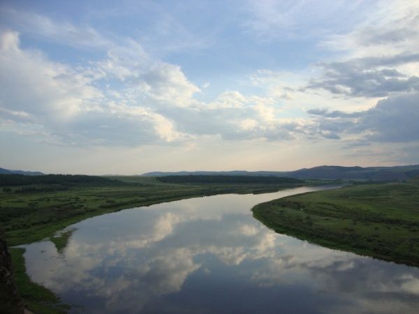第二天坐班车前往拉布大林,在客运站斜对面的红水泉洗浴中心住下了,这儿环境还挺好,能洗澡房间也干净,平均下来只要30块钱一个人。放下行李我们去根河湿地看日落,门票40,学生半价,不过如果能找到好司机带你的话票可以更便宜,山顶上的湿地全景很漂亮,但看全景远远满足不了我们,所以我们决定一探究竟,沿着一条未开发的小道一路下山来到了河边,山道是艰险的,好几次差点滚下山,但来到河边后,只觉得这山没白下,河水潺潺,树木丛生,而且没有一人踏足,我们先玩了会水,然后躺在了河边看天空,那感觉别提多舒服了,呼伦贝尔的天空非常美,云层很低,朵朵白云形状各异,都有能跳上去的感觉,湿地给我们留下了美好的印象,可惜时间太短,不然真想呆上一天。