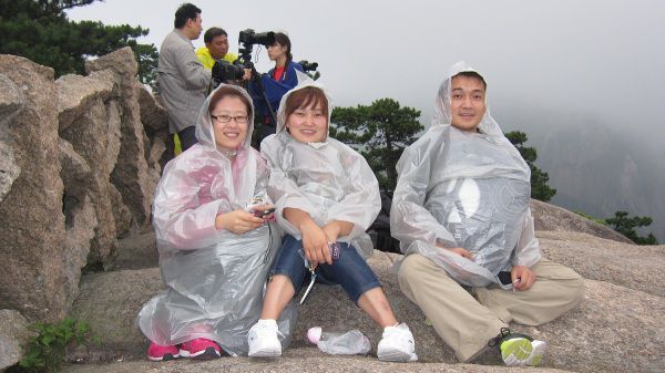 因为是刚到黄山,在火车上休整了一夜(应该不算太好啦!),这里给大家一个建议:一定要下火车时先把回程的票给买好了,当天买的话是不可能买到座票,更别说是卧铺啦,我就是因为当时刚到黄山太兴奋而急着找去黄山的车才忘记买票以至于最后不得不站回深圳的可怜又可恨的人(真是太惨啦!);接下来我们可以乘火车站(位于屯溪区)的中巴前往黄山风景区(位于汤口区),票价rmb15元一人,大概一个小时,车子会到风景区的换乘中心,这里提醒一下带的东西比较多的朋友可以把一部分不用带上山的寄存在山下的酒店里,一天是10元钱;水和食物是必备的啦,山上一般来说风会比较大,建议朋友们一定要带上一件外套,肯定是能用到的啦!都说黄山山里会时不时的下雨,但我们买的简易雨衣最终还是没有挡雨,不过在丹霞山峰顶的时候起到了挡风的作用,还是不无用处的!