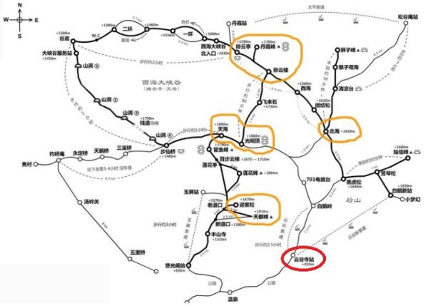 10:30左右,从换乘中心乘车去云谷寺rmb13,大体上路经是:云谷寺→白鹅岭→始信峰→狮子峰→梦笔生花→光明顶→飞来石→排云亭→西海大峡谷;