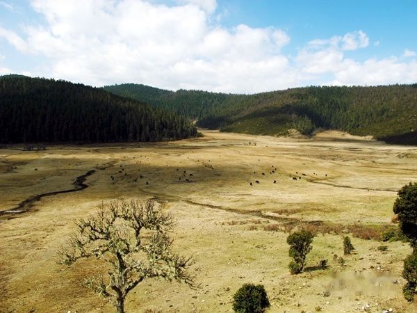 这个时间去普达措时间还太早,那天风很大,有些冷,地上没有什么草,看着比较光秃秃的。