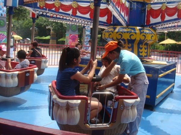 这个就是坐上去然后有个小小的坡,一直在上下上下,很适合小孩子玩。坐在我们前面的是一父子,我和发坐,还没开始发就开始叫,啊啊啊,还在问前面的小朋友你怕不怕啊,其实刚开始我也有点怕,但我真的不好意思叫出来,因为这个都怕就真的来这里不要玩了,看别人玩就行了。不过发是特别的人,她是属于一上车就晕的那类。