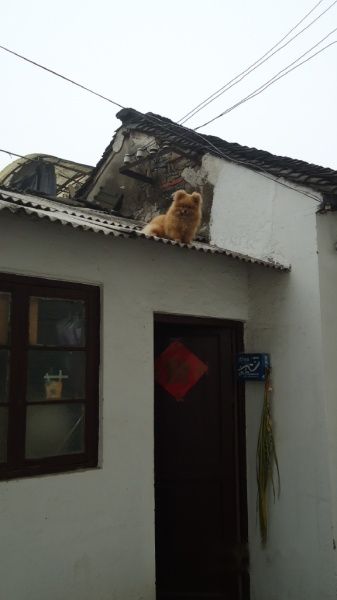我和老娘正走着 只听几声狗吠 找了一圈 原来在房上 只知道猫可以上房 从未见过狗也上房 苏州的狗真厉害