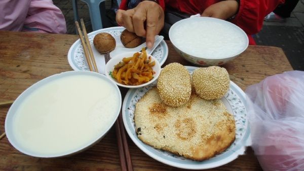 这是我们的早餐 苏州的面食样式很多 著名的小吃也都是面食甜点 尤其喜爱粘食 味道也确实不错 麻圆还有咸口儿的呢