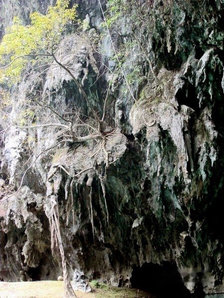 乘舟进第一天窗,洞口一古榕临水而立,凭添几分古雅、幽静。