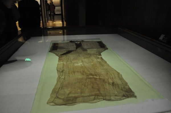 博物馆里还有工作人员免费讲解。马王堆坟墓里有一件素纱禅衣,洁白如云,轻盈如雾,一件连衣带袖总长一米九的衣服,重量只有49克。