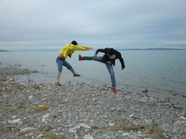 为把vw开到湖边享受一下,途中找了个藏胞农家乐,一人十元,下去草地后直奔湖边而去,在离湖边约三十米处就没有路了,车辙也到此为止,再往湖边走就是类似草甸的地面了,心想就在这里享受一下吧。四人下车才发现,不是我们在享受湖景,而是蚊子在享受我们,在紧急喷洒驱蚊剂后没有任何效果,只好匆匆忙忙照了几张相立马撤退。