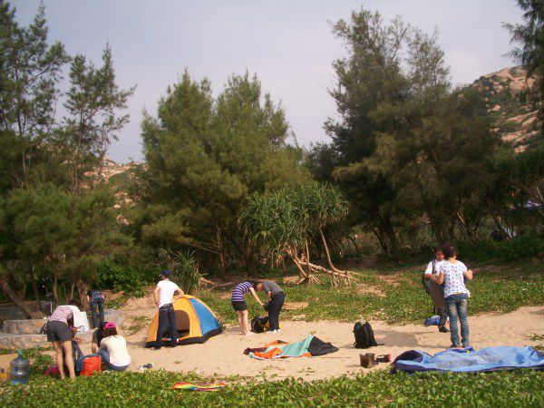 沙上垫着二层胶纸,人在睡袋中,张眼望星,浪声和海风吹树声仿似天簌之声慢慢把我带入梦乡,又仿佛回到很久很久……