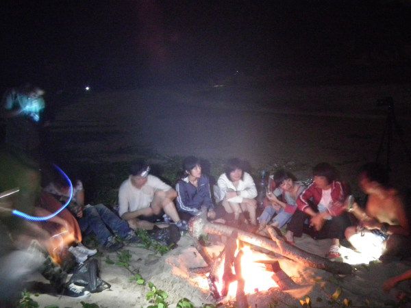 众人席沙而坐,齐唱(朋友),各人的热情也点燃起来。