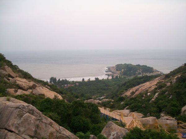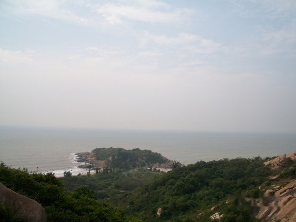 上山期间一时来兴致,攀上半山峭壁从另一角度再看月牙湾。